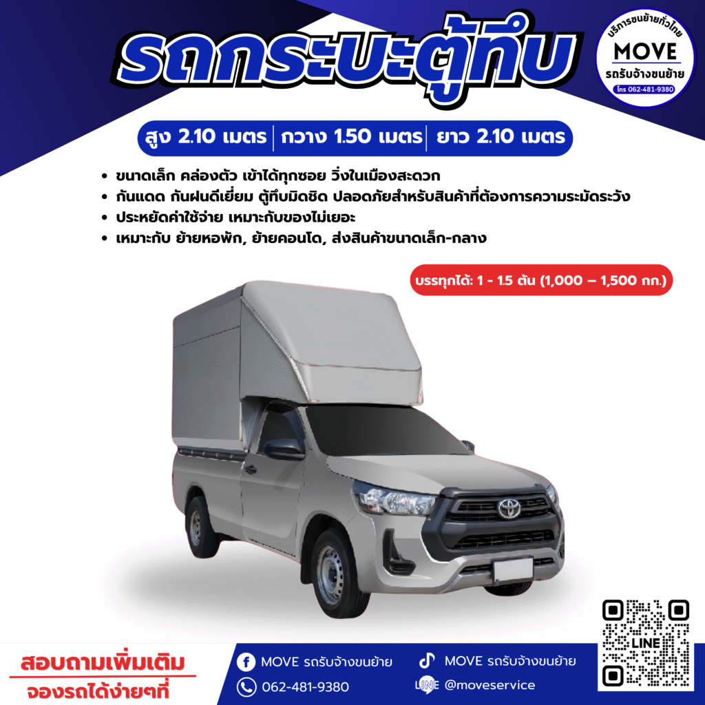 รับขนย้ายทุกชนิด ขนของ ย้ายหอพัก ย้ายเครื่องมือทางการแพทย์ มีรถหลายขนาด ให้เลือก รถกระบะตู้ทึบ รถ4ล้อจัมโบ้ และ รถบรรทุก 6 ล้อ ตั้งแต่ขนาด 2ตัน,4ตัน,7ตัน
